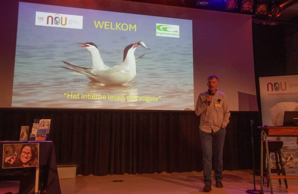 Het jubileumsymposium werd geopend met een welkomstpraatje door de ‘roergangers’ van beide organisaties: Christiaan Both en Henk van der Jeugd. Christiaan lichtte in zijn introductie de keuze van het dagthema toe: ‘Het intieme leven van vogels’. Henk memoreerde dat het in 2026 115 jaar geleden is dat in Nederland de eerste vogelringen werden omgelegd. De facto viert ringend Nederland dit jaar dus ook een lustrum.